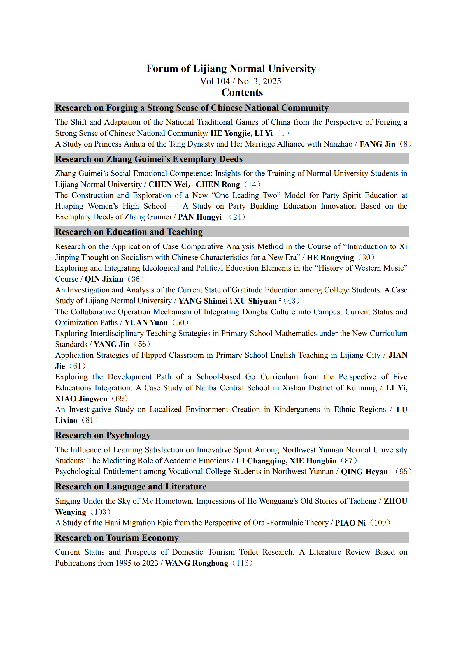《丽师论丛》2025年第三期目录