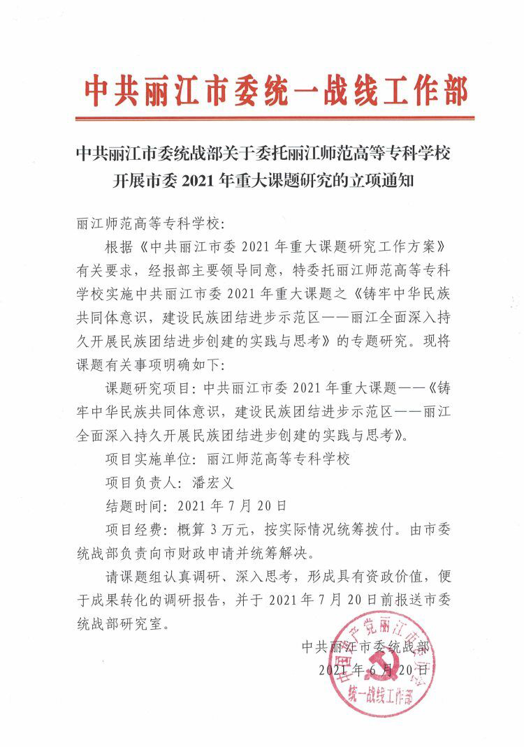 民研中心潘宏义项目获丽江市委2021年重大课题立项